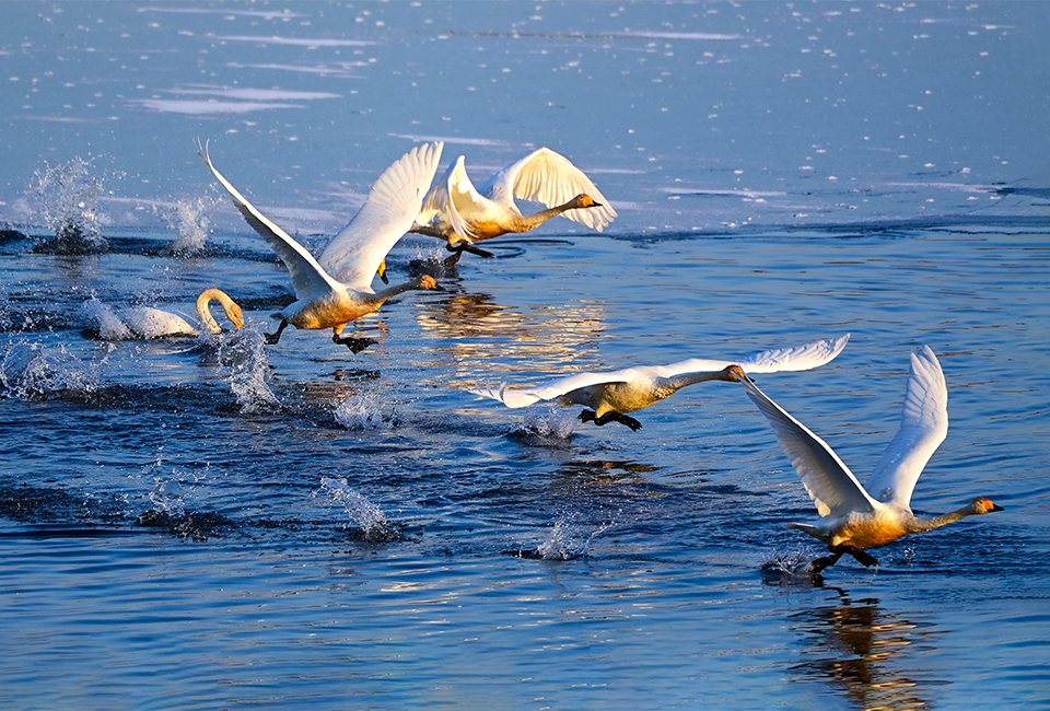 팔당물안개공원에 백조들이 흰 날개를 휘날리며 찾아왔다.