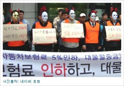 그런데, 어제의 가면시위는 '복면시위 금지법' 국회통과와 전혀 무관한 시위라는 사실과 가면을 쓴 채 자동차보험료 인하를 요구하는 피켓을 내걸고 구호를 외친 사람들의 정체가 '보험소비자의 이익을 대변(?)하는 '보험소비자연맹' 소속 운영진과 회원이라는 사실이 나로 하여금 실소를 금치 못하게 한다.