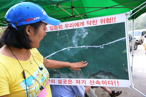 그녀는 한전 측의 잘못을 이렇게 짚었다. “첫째는 오만함이지요. 그네들은 감사원이나 청와대보다 더 높은 데라도 있으면 민원을 제기하라고 합니다. 해봤자 우리쪽(한전)의 손을 들어 줄걸(?)이라는 겁니다. 전원개발촉진법이라는 악법 때문입니다. 이 악법은 거의 일방적으로 한전을 손들어 주었습니다. 국민의 행복추구권과는 관계가 없습니다. 송전탑이 가고 싶은 데로 무소불위의 힘으로 가도록 되어 있어 한전이 법을 악용하고 남용하도록 합니다. 오히려 피해자인 저를 형사고발하고 손해배상까지 청구해 협박하고 있으니까요.”