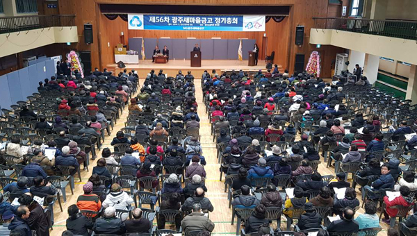 광주새마을금고는 지난 23일 광주초등학교 강당에서 제56차 정기총회를 개최, 신임 이사장 선거에서 민경남(60) 전 부이사장이 박영철(62) 전 부이사장을 965표대 816표, 149표(무효6)차로 누르고 신임 이사장으로 당선됐다.