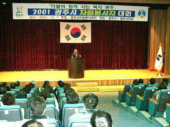 광주시 자원봉사센터에서 주최하고 광주시와 시의회가 후원한 이번 대회에는 박종진 시장, 구의모 시의회의장, 박혁규 국회의원과 각급 기관다체장, 권혁구 자원봉사단체협의회장 및 자원봉사회원 등 400여명이 참석했다.