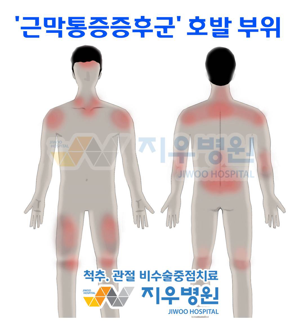 근막통증증후군은 흔히 ‘근육이 뭉쳤다’, ‘담에 걸렸다’라고 표현하는 만성 근육통 질환으로 목, 어깨, 허리, 허벅지, 종아리 등에 근육을 둘러싸고 있는 얇은 근막에 통증 유발점이 발생하고 신경학적 이상이 없음에도 통증이 발생하는 질환으로 주요 증상으로는 뻐근하고 쑤시는 듯한 통증과 만졌을 때 딱딱하게 뭉쳐진 듯한 느낌과 이명과 두통 등의 증상이 동반될 수도 있다.